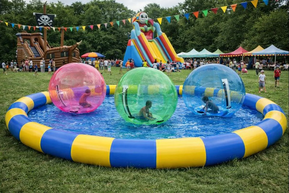 Nabízíme pronájem aquazorbing koulí jako samostatnou atrakci v počtu až 4 kusy, vhodnou do vlastního bazénu nebo na vodní plochu.Druhou možností je kompletní varianta s aquazorbing koulemi a nafukovacím bazénem, ideální řešení pro akce bez zázemí.Aquazorbing je bezpečná, atraktivní a velmi oblíbená zábava na dětských dnech, festivalech, firemních akcích i slavnostech obcí.