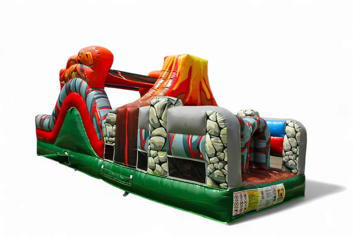 Střední překážková dráha zaujme hlavně malé obdivovatele druhohor a pravěku.Děti si mohou zařádit na velké skákací ploše s herními prvky, prolézat tunely a nechybí ani pořádná skluzavka. Vše v designu oblíbených dinosaurů.V horní části skluzavky je hrad opatřen ochrannou sítí pro větší bezpečnost Vašich dětí.
