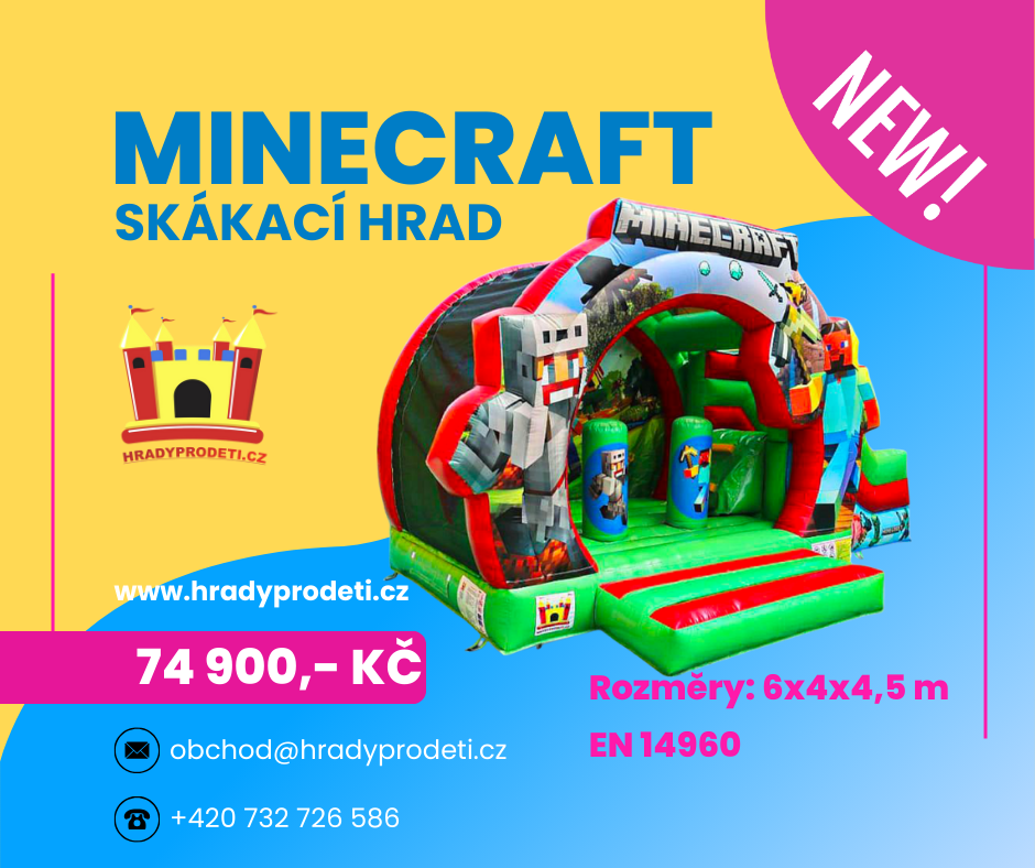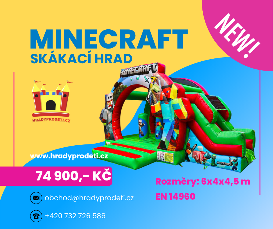 🎮 MINECRAFT SKÁKACÍ HRAD – SEN KAŽDÉHO MALÉHO HRÁČE! 🌟Oblíbený svět Minecraftu teď ožívá i na vaší akci! Tento barevný a originální skákací hrad přenese děti přímo do kostičkového dobrodružství, kde si užijí nekonečnou zábavu, skákání i skluzavku.✅ Populární motiv Minecraft – lákadlo, které děti okamžitě poznají a milují✅ Atraktivní kombinace skákací plochy a skluzavky v jednom✅ Profesionální kvalita a bezpečnost s certifikací EN 14960✅ Ideální na dětské dny, školní akce, narozeninové oslavy i firemní eventy👉 Minecraft skákací hrad je zárukou obrovského zájmu dětí a stane se TOP atrakcí každé akce!💰 Cena: 74 900 Kč včetně DPH💳 Možnost nákupu na splátky přes Home Credit