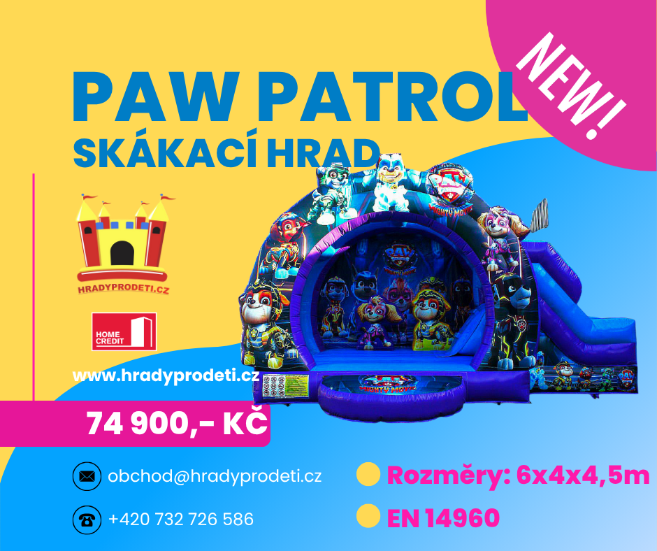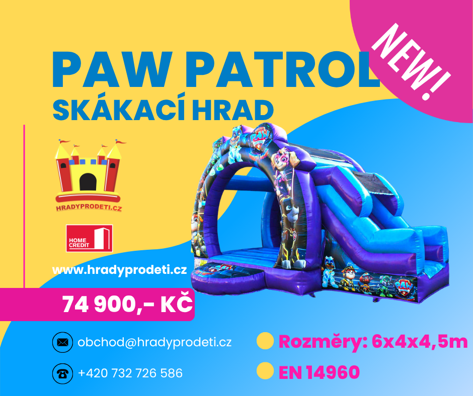 🐾 PAW PATROL SKÁKACÍ HRAD – NOVINKA! 🚒🐶🚁Oblíbení pejskové z Tlapkové patroly dorazili i mezi nafukovací atrakce! Skákací hrad Paw Patrol s barevným designem a skluzavkou zaručí dětem hodiny radosti, smíchu a nekonečného dovádění.✅ Rozměry: 6 × 4 × 4,5 m – ideální velikost pro oslavy i větší akce✅ Certifikace EN 14960 – profesionální kvalita a bezpečnost✅ Populární motiv Paw Patrol – děti si ho okamžitě zamilují✅ Skvělý doplněk pro dětské dny, obecní slavnosti, školní i firemní eventy👉 S Paw Patrol hradem se vaše akce promění v nezapomenutelné dobrodružství, které nadchne malé i velké fanoušky těchto hrdinských pejsků!💰 Cena: 74 900 Kč s DPH💳 Možnost nákupu na splátky přes Home Credit