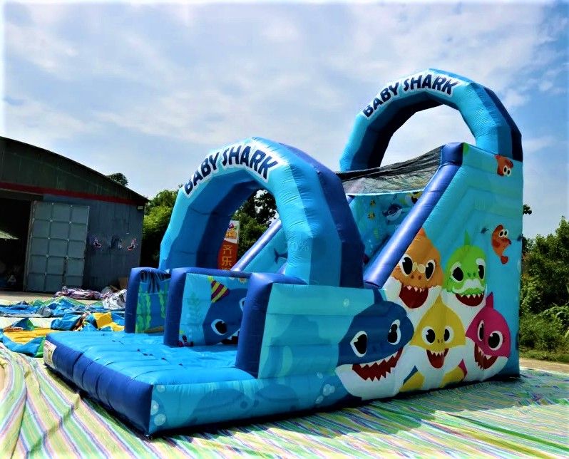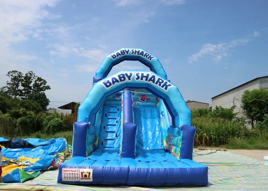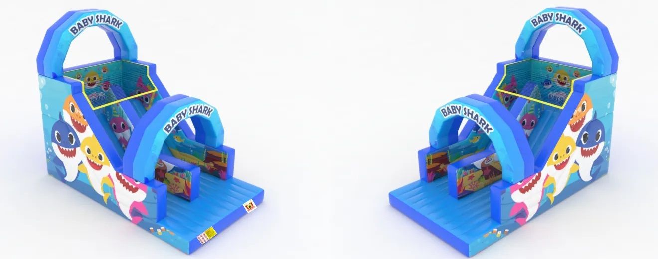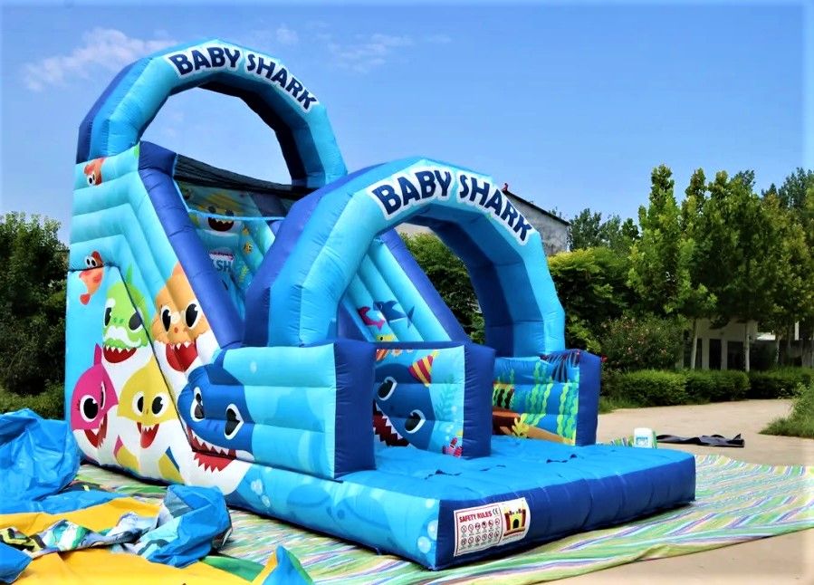 Ahoj děti! Připravte se na neuvěřitelnou podmořskou jízdu s naší nafukovací skluzavkou s nádherným Baby Shark designem!